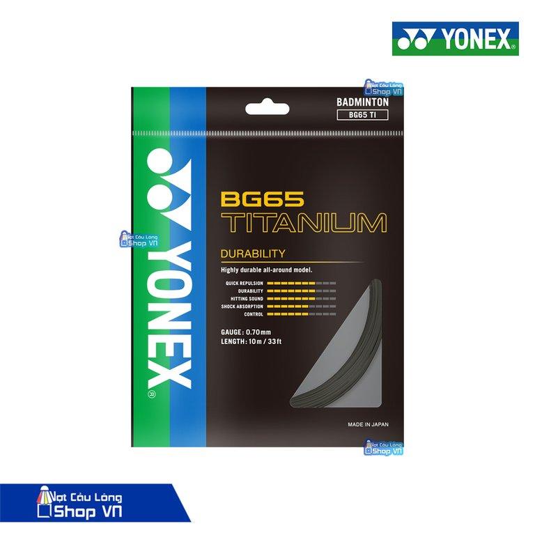 Do Yonex nhắm đến những người chơi thiên về lối chơi sức mạnh nên BG65 TITANIUM đã thiết kế phù hợp với việc đó bằng cách phủ một lớp hợp lai Titanium phức hợp đem lại cảm giác sắc nét và dễ chịu khi đập cầu. Đây là loại dây cước được căng nhiều nhất tại Việt Nam ở thời điểm hiện tại. BG 65 Titanium có độ bền cao và có tiếng nổ khá lớn.