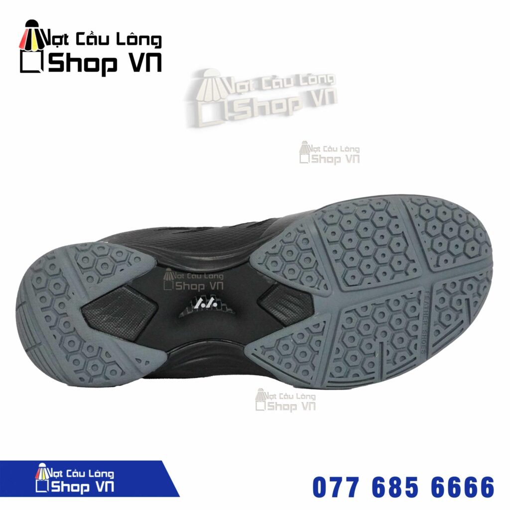 L010 – Đen có form thiết kế không những ôm trọn bàn chân mà còn tạo độ êm ái tối đa trong mỗi bước di chuyển, có độ bám sân tuyệt vời, phù hợp với hầu hết các sân chơi cầu lông. Ngoài ra, chính giữa đế giày còn được chèn thêm một tấm 3D Carbon giúp tăng cường độ ổn định tối đa trong mỗi bước di chuyển